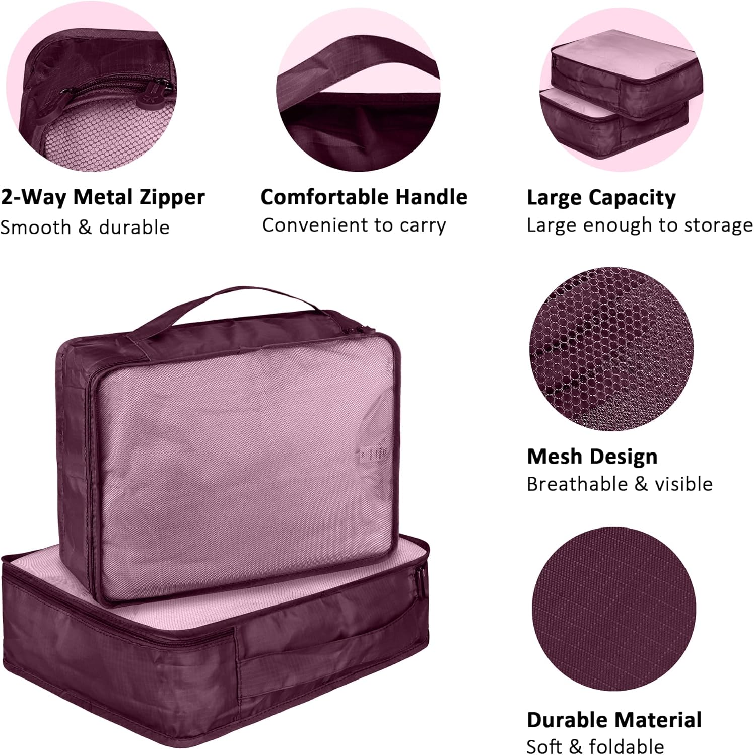 Ebbniur Packing Cubes Set, 2 Pcs Packing Organizers Set for Suitcases (Burgundy)