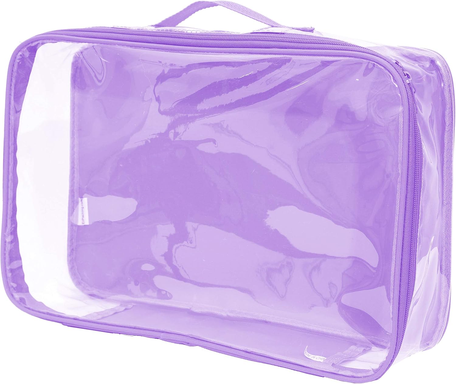 Large Clear Travel Packing Cube/See-Through PVC Organizer for Suitcase/Multipurpose Pouch w/Handle/Dress Shirts, Pants, Cashmere, Sweaters & Seasonal Linen Storage Protection (Lilac)